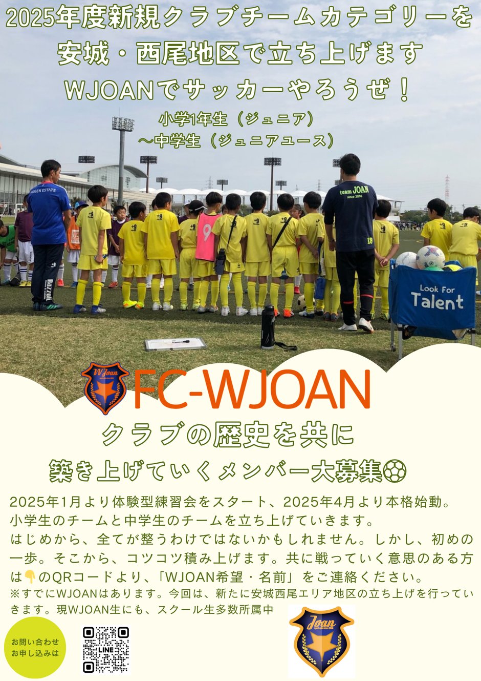 育成コースを遊びきりようコースを設置し、JOANだけでなく既存スクール生もご入会いただけますので、少しでも興味ありましたら体験してみませんか!お問合わせもお気軽にご連絡ください!